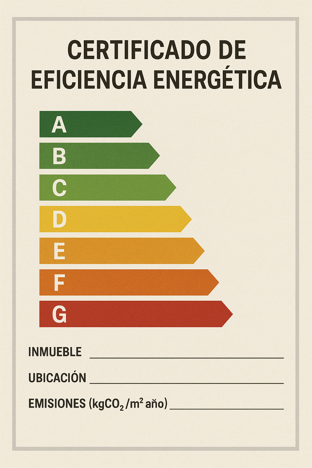 El certificado de eficiencia energética (CEE) es el documento que califica un edificio o parte de él —vivienda, local u oficina— con una letra (de la A a la G) según su consumo de energía y sus emisiones asociadas. Nació para dar transparencia al mercado inmobiliario y empujar la rehabilitación: si el comprador o arrendatario sabe cuánta energía gasta un inmueble, puede comparar y exigir mejoras.