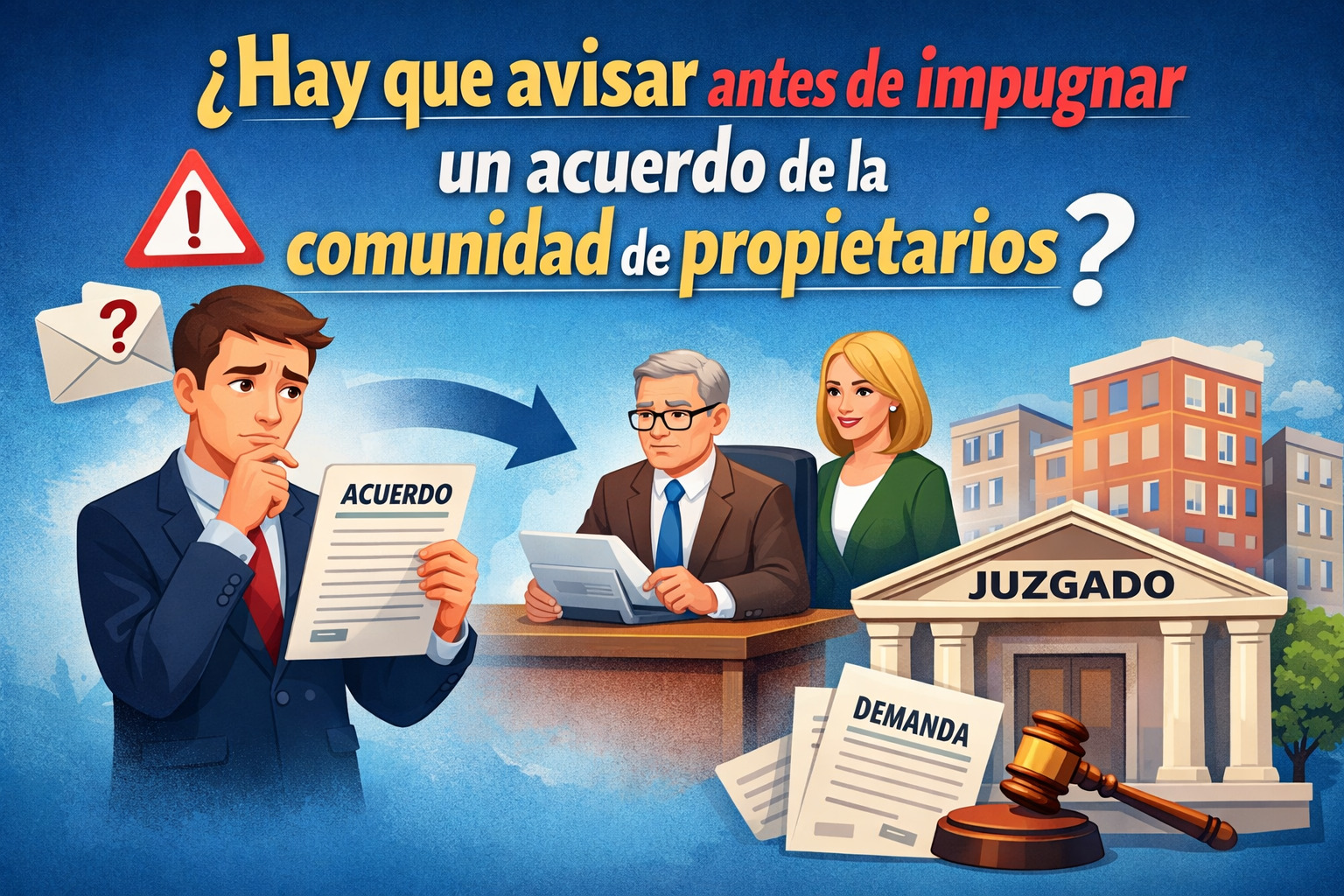 Una de las preguntas más frecuentes entre los propietarios es si deben comunicar previamente a la comunidad su intención de impugnar el acuerdo.