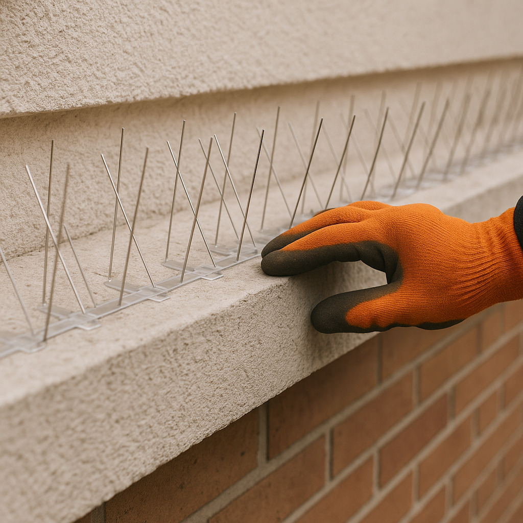 - Pinchos metálicos o de policarbonato: adaptables a barandillas, cornisas y alféizares.